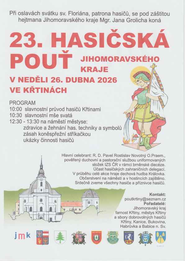 V neděli 26. dubna 2026 se při oslavách svátku patrona hasičů sv. Floriána uskuteční 23. hasičská pouť Jihomoravského kraje.
